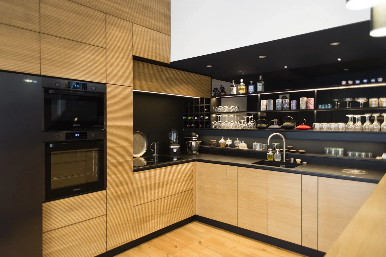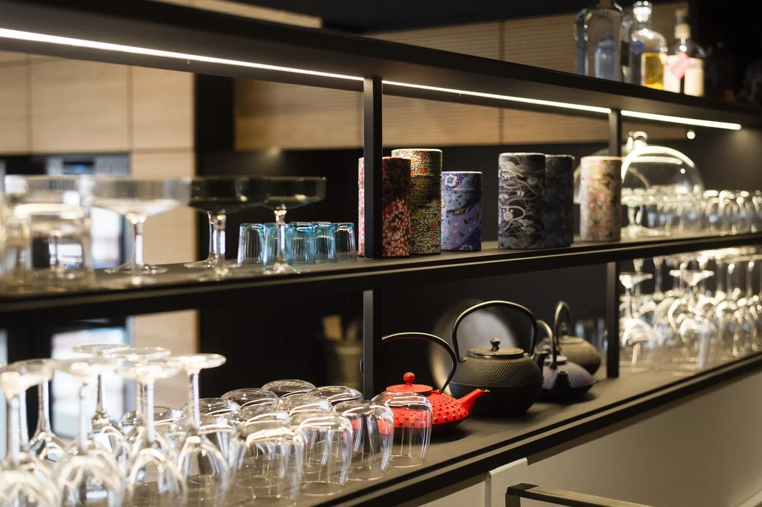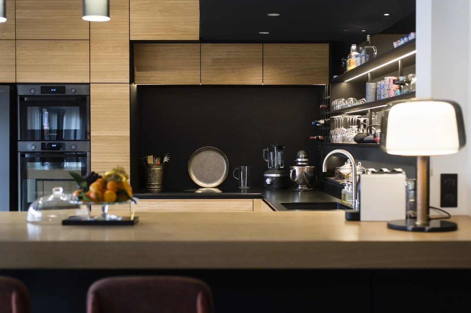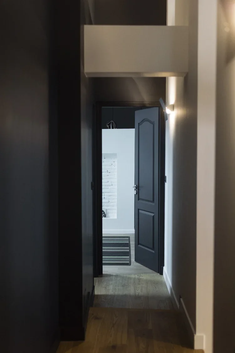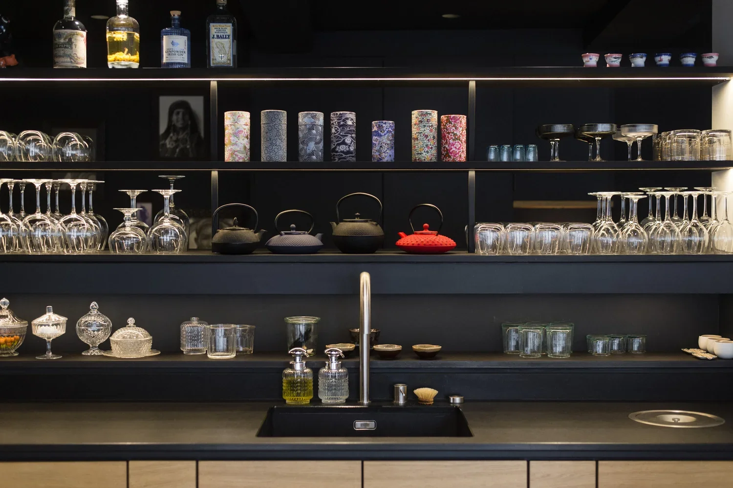 Cet appartement atypique esprit loft est le résultat d’une surélévation. L’atout majeur est une grande baie vitrée inondant de luminosité la pièce à vivre. Les passerelles et mezzanines créent des espaces intimistes tout en gardant le volume de la pièce. Des différences de niveaux du fait de la structure du bâtiment permet d’avoir des zones avec différentes fonctions : espace TV, Bureau, salon, espace repas… La cuisine devenant une partie intégrante du séjour a été conçu et réalisé sur mesure dans des matériaux associant chic et sobriété, en s’inspirant de l’esprit japonisant. La bibliothèque a été dessinée et réalisée sur mesure avec des matériaux faisant échos à la cuisine. La table de repas, et tables basses en chêne massif est dans l’esprit brut et usé. Un poêle posé pendant les travaux apporte chaleur et confort. Le contraste de teintes pour nuancer le volume de la pièce. Les meubles et luminaires Hans Wegner, Poulsen, Serge Mouille, Kann Design, And tradition vendus au showroom Christine Clavère.