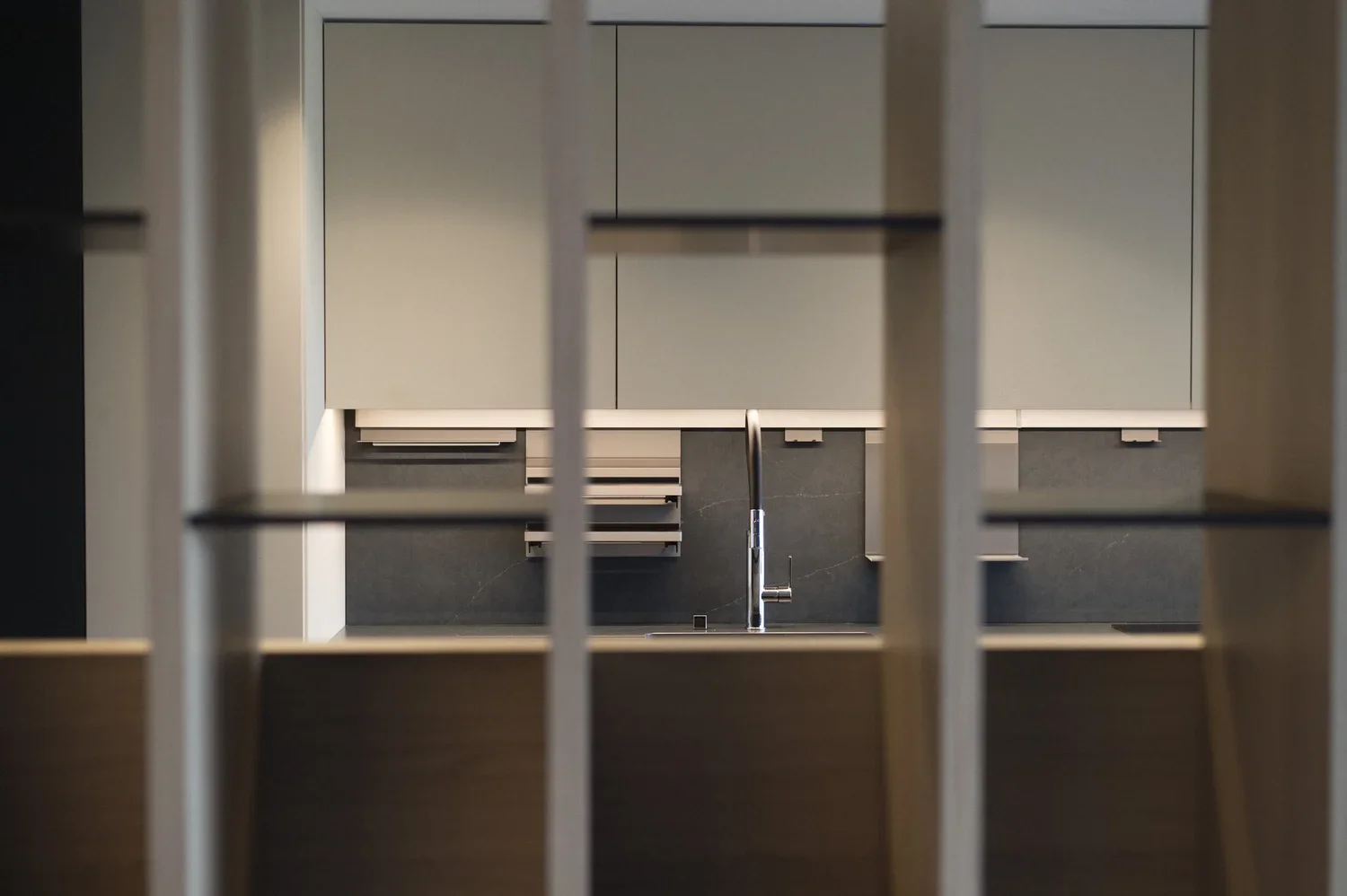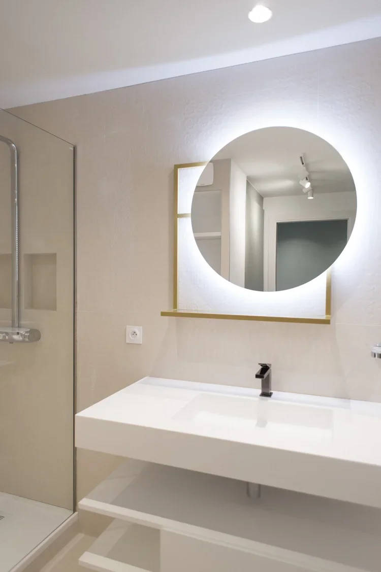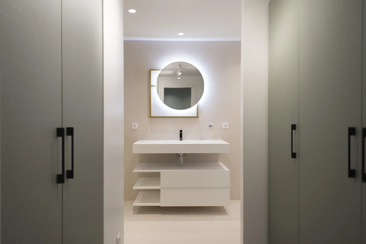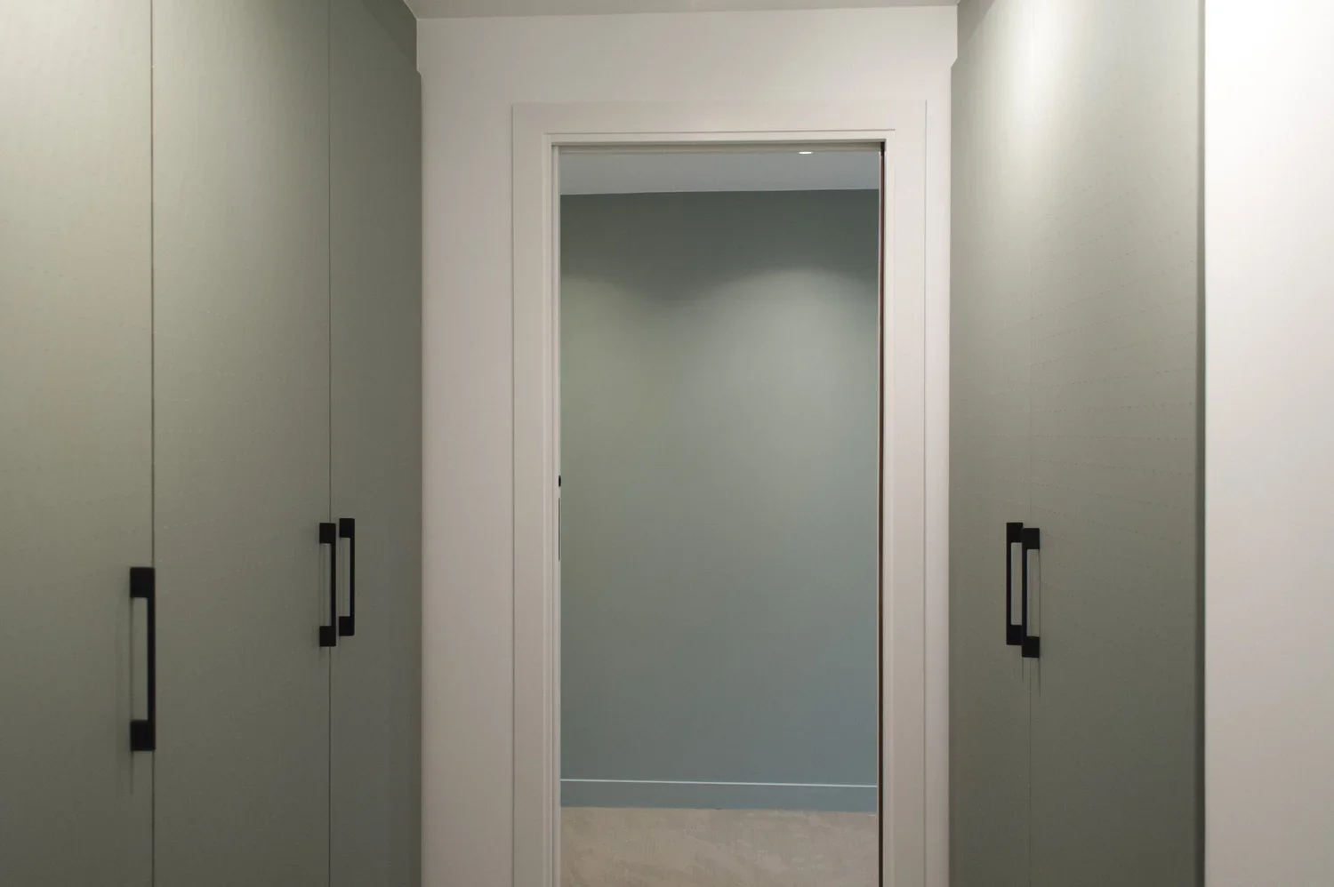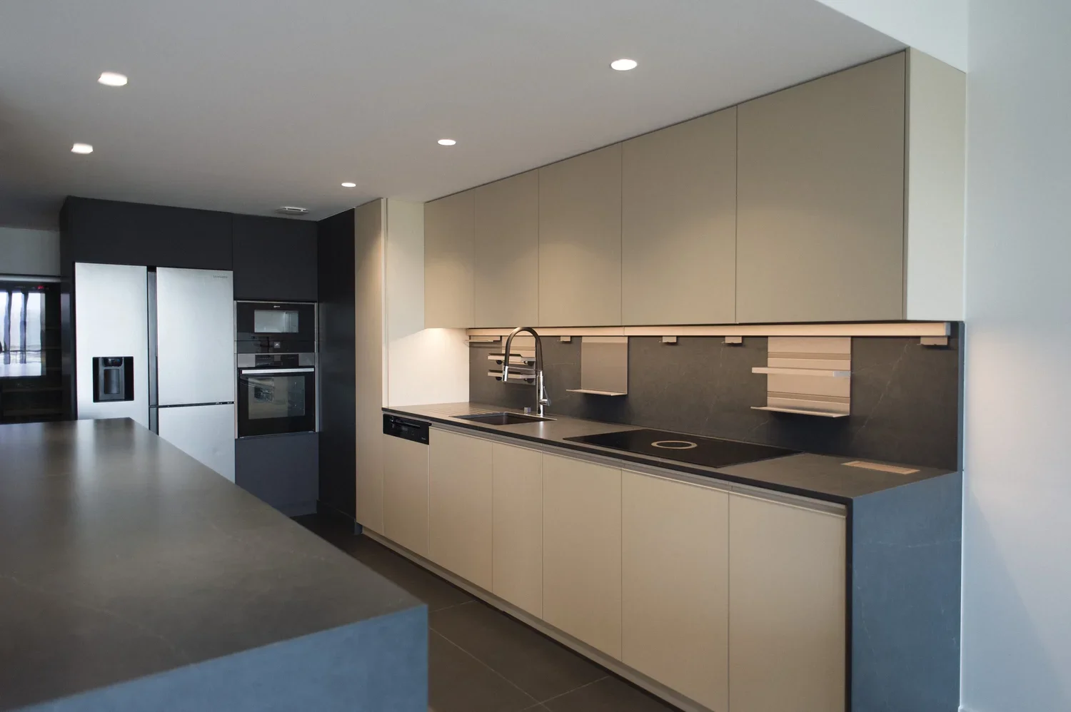 L’objectif du projet a été d'orienter le regard sur la perspective et le potentiel majeur : la vue ouverte sur la Garonne. En bon état, à priori, mais manquant de chaleur et de charme par ces matériaux ; carrelage basique au sol, cloisons en placopan, sanitaire vieillot. Il disposait de trois chambres avec deux salles de bain et une grande pièce à vivre. Les cloisons ont été remaniées de manière à redistribuer l’espace pour la réalisation d’une grande suite parentale avec dressing, salle de bain et bureau attenant, une chambre d’amis avec sa salle d’eau, le tout communiquant avec des portes dérobées et à glandage. Le mobilier et l’agencement (cuisine et meuble vasque compris) ont été conçus et réalisés sur mesure avec des matériaux nobles comme le chêne et l’acier massif pour la table de repas. Le sol a été recouvert d’un bolon pour amener de la chaleur et palier à la problématique de la hauteur disponible avec l’ouverture des baies vitrée. Les couleurs et le papier peint ont été choisis en collaboration avec les maitres d’ouvrage. Durée du chantier : trois mois.